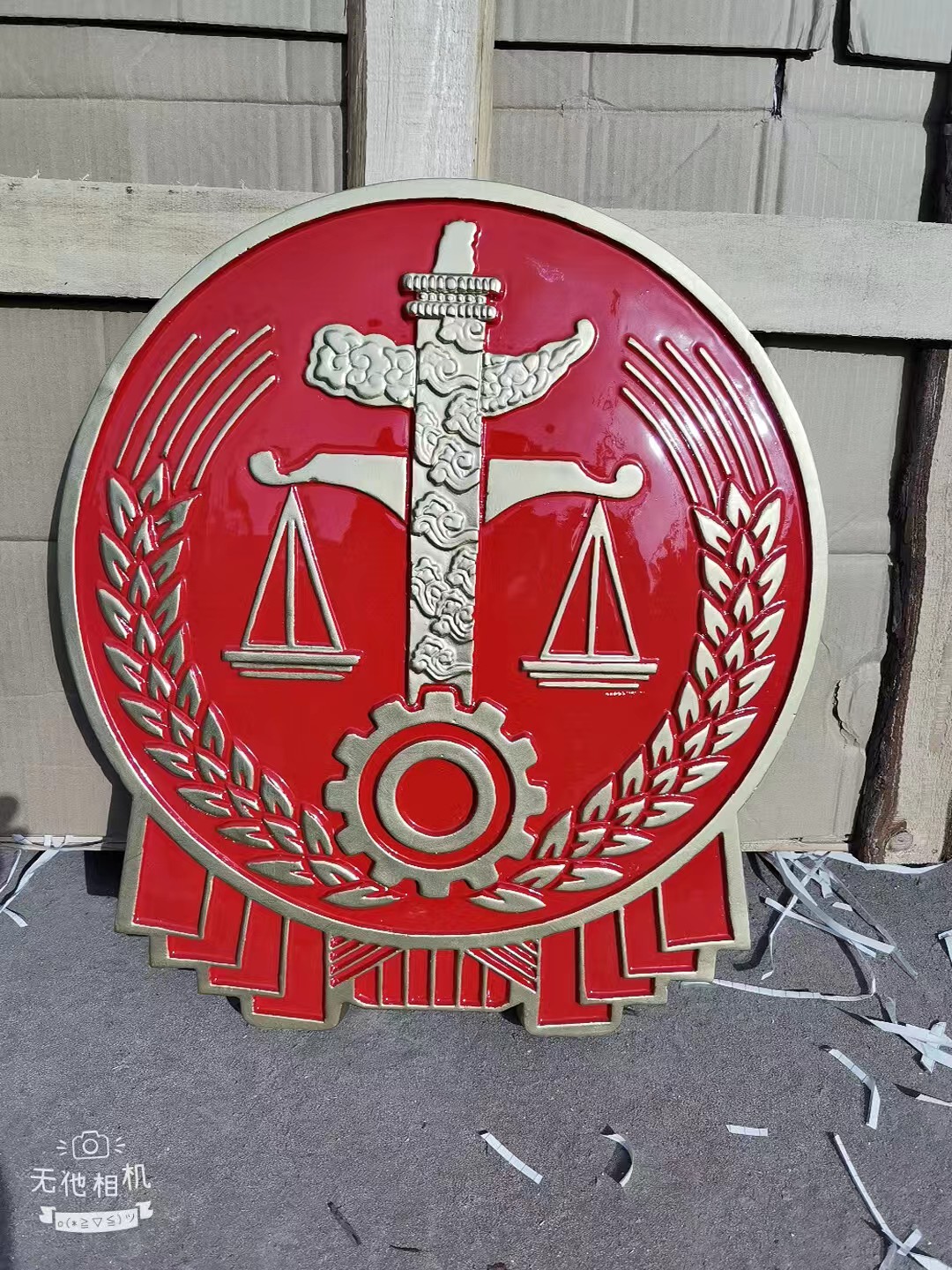 安装方式 | 上海法徽生产厂家-小徽章背面都配有穿挂耳孔,钉子钉在墙上,再用穿铁丝钢丝,适合安装在办公室/会议室会场等。大徽后面为膨胀螺丝孔,安装需要定做铁架,铁架固定墙面上后,再将徽章固定在铁架上。玻璃幕墙也是需要铁架方式安装。 |